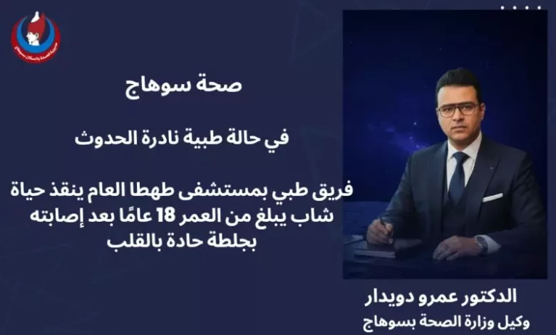 وأوضح الدكتور عمرو دويدار، وكيل وزارة الصحة بسوهاج، أن المريض حضر إلى المستشفى في حالة حرجة ومتأخرة نسبيًا، وبعد إجراء رسم القلب والفحوصات اللازمة تبين وجود جلطة حادة في الشريان الأمامي وهي من الحالات النادرة جدًا على مستوى العالم في هذا العمر.