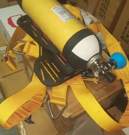 واشار الكيميائى مصطفى الحلوانى مدير الادارة العامة للسلامة والصحة المهنية ان المنظومة مكونة من اقنعة حماية للوجه والتنفس تتصل بخرطوم 30 متر ووصلات سريعة التوصيل اليدوى تتصل بضاغط هواء 10 بار بخزان ساعة 500 لتر هواء وتعمل وحدة الضغط اعلى الخزان بدون زيت لضمان سلامة التنفس ويتوافر بالمنظومة اقنعة وجه كامل مع امكانية تزويد عامل او اثنين فى نفس الوقت بالهواء من خلال خطين وقناعين وتستخدم هذه المنظومة فى أماكن عمل جو هواء او تحت الماء هذا بالاضافة الى توافر احزمة سيفتى بقوة تحمل تصل الى 1000 كجم ومزودة بحامل ظهر اسطوانة هواء من 3 الى 9 لتر يمكن شحنها 300 بار كما تتميز هذه المنظومة انه فى حال عطل او انقطاع الكهرباء وتاثر ضغط وكم الهواء يستطيع العامل بسهولة فتح صمام الاسطوانة فيدخل الهواء الى القناع ولا يخرج منه لوجود صمام عدم الرجوع.
