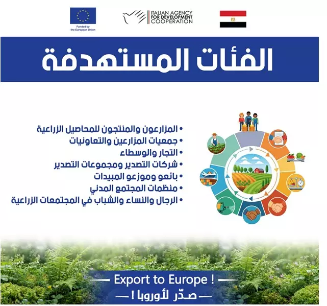في إطار الجهود الرامية إلى دعم تنافسية الصادرات الزراعية المصرية وتعزيز امتثالها للمعايير الأوروبية والدولية، تنطلق منتصف شهر فبراير 2026 حملة التوعية الميدانية “صدّر لأوروبا” بمحافظات بني سويف، وأسيوط، وسوهاج، وذلك ضمن برنامج الاتحاد الأوروبي للتنمية الريفية المتكاملة في مصر (EU-ZIRA3A).
