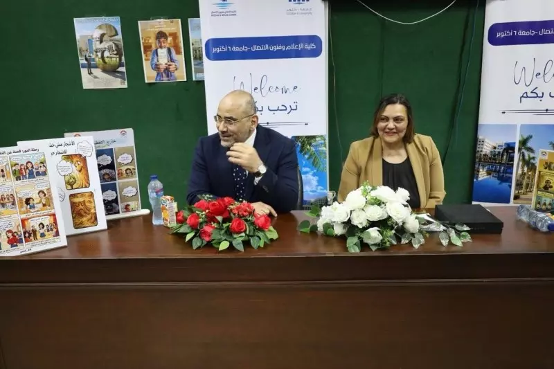 تحت رعاية الأستاذ الدكتور ممدوح مصطفى غراب رئيس جامعة 6 أكتوبر ، والأستاذ الدكتور هشام تمراز نائب رئيس الجامعة لشئون خدمة المجتمع وتنمية البيئة ، وتحت إشراف الأستاذة الدكتورة دينا فاروق أبوزيد عميدة كلية الإعلام وفنون الاتصال، افتتح اليوم الفنان الكبير عمرو فهمي فنان كاريكاتير الأخبار ، معرض الكوميكس الأول لكلية الإعلام بجامعة 6 أكتوبر. واستقبله ورحب به الأستاذ الدكتور ممدوح مصطفى غراب رئيس الجامعة.